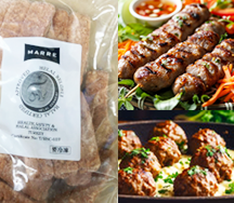 牛のひき肉を使い、プリプリとした独特の食感と風味があり、細長い棒状に成形され、お好みの焼き加減でご提供ください。